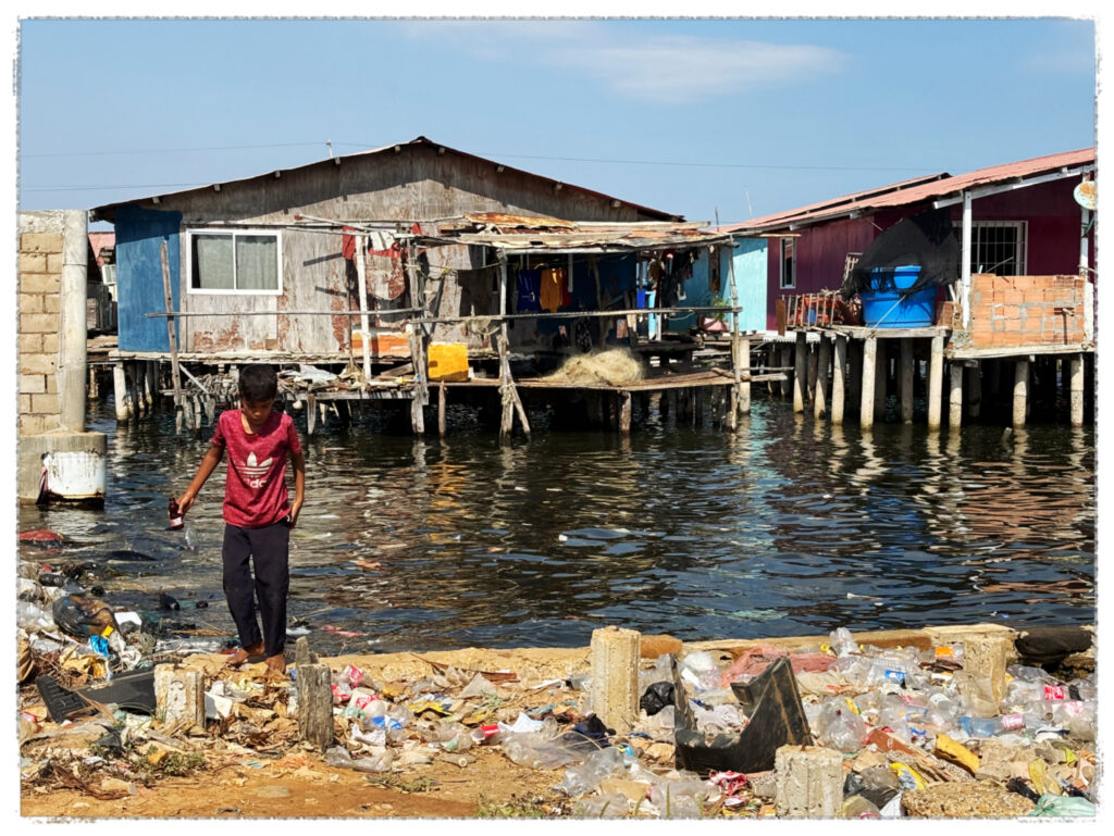 Il paese ha cominciato a svuotarsi. Nell’arco di sette anni (2015-2022), quasi otto milioni di venezuelano hanno invaso le vicine Colombia e Brasile o si sono spinti più a sud in Peru e Chile o verso la mecca del nord Panama o gli Stati Uniti con il terribile passaggio nello stretto del Darién tra Panamá e Colombia, file di caminantes che si inoltrano per quindici giorni in una finta selva tropicale natura già di per sé ostile con in più incroci con narcotrafficanti che hanno trovato un’altra fonte di reddito nella “gestione” o meglio saccheggio dei migranti. Famiglie separate, bambini piccoli lasciati ai nonni, nonni che vivono degli spiccioli della remesas (stimate a 50$ al mese con alti costi per invio dei pochi risparmi), padri che formano un’altra famiglia all’estero, ragazze perse nel racket umano; ostracismo nei paesi di accoglienza. Storie umane difficili da raccontare.