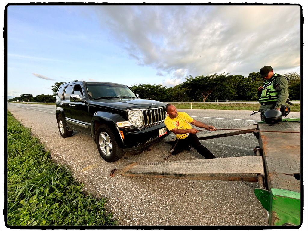 Il parco macchine venezuelano. Coro, Falcón.Lo zaino, simbolo dell’educazione universale chavista. In ogni scuola, Venezuela.Un posto di blocco, uno ogni trenta chilometri. Verso il Táchira, Venezuelana.Posto di controllo verso il Ponte di Maracaibo, Zulia.Dodge anni 60. In ogni strada del Venezuela.Guardie bolivariane. Ingresso al Parco del Avíla, Caracas.Graffiti, Chacao, Caracas.Caracas centro.Mercato di Maracaibo, Zulia.San Francisco, Maracaibo, Zulia.Lago di Maracaibo, Zulia.